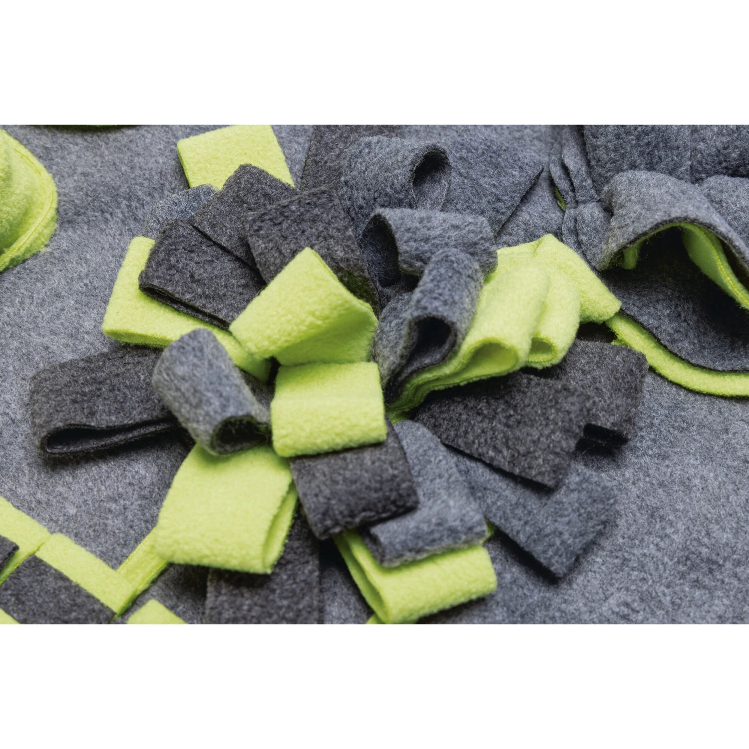 Beeztees Snuffelmat Flora is een snuffelparadijs voor uw hond! De mat heeft diverse vormen waar u de hondensnoepjes in kunt verstoppen. Er zijn diverse moeilijkheidsgraden op de mat. Snoepjes tussen de leuke sliertjes zijn makkelijk te vinden. In het sokje is het een stukje lastiger voor uw hond. Het zoeken naar de snoepjes draagt bij aan de mentale stimulatie. De mat blijft goed liggen door de verzwaarde zijkanten en een anti-slip onderkant. De mat kan gewassen worden op 30°C, haal dan wel eerst de verzwaarde zijkanten eruit.